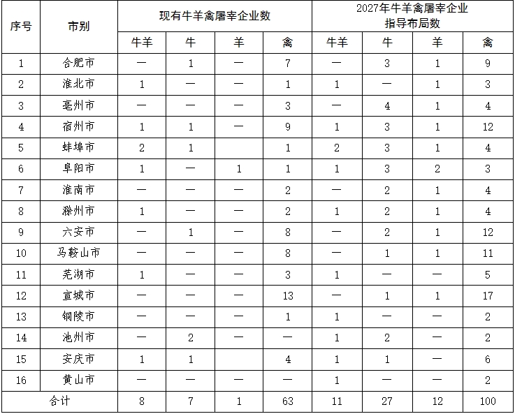 附件:安徽省牛羊禽屠宰企业分布及2027年指导布局数