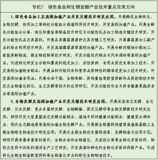 6.绿色食品和生物发酵产业技术创新。围绕打造绿色食品加工优势区的需求,发挥特色农产品优势,重点开展绿色储运、新型加工、清洁生产、品质调控等共性关键技术攻关,以枸杞、乳制品、葡萄酒、畜禽肉、粮油、果蔬等为重点,开发市场需求大、附加值高的功能食品、营养食品、保健食品等。围绕构建绿色、低碳、高效生物发酵产业目标,重点开发生物发酵新技术、优良菌种与高值化加工产品,开展生物化学原料药和制剂及医药中间体的清洁生产工艺研发应用,提升生物发酵产业核心竞争力。