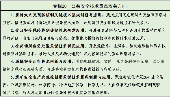 3.公共安全技术创新。围绕平安宁夏建设,开展公共安全事件防控技术和应急处置能力关键技术的集成创新与应用,加强政法科技创新,促进社会安全与司法业务智能化。强化安全生产科技攻关,针对教育、文化旅游、交通、建筑等重点行业的社会安全问题,集成应用一批关键技术和先进装备,全面提高安全生产科技保障能力。