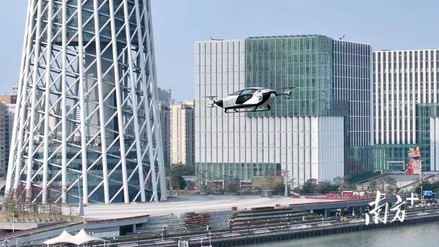 3月8日上午9时20分,一架无人驾驶飞行汽车从位于广州CBD的天德广场垂直起飞,以自动驾驶模式向标志性建筑广州塔方向飞行,飞越广东省博物馆、花城广场、海心沙亚运公园等广州的地标性景观后返回出发点,全程往返用时约6分钟,顺利完成城市CBD“天德广场—广州塔”区域的低空飞行。