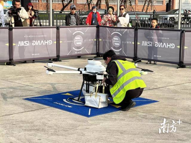在荔湾区太古仓码头,运输海鲜等食材的无人机刚刚抵达,工作人员从舱内取出黄沙水产市场新鲜切片的三文鱼,送上食客的餐桌。“从黄沙水产市场到太古仓,平常骑手的配送时间约需要50分钟,无人机配送只需要7—8分钟。”亿航智能物流总监刘江权介绍,目前在白鹅潭商圈已开通3条无人机空中配送航线,可运送海鲜水产、生鲜肉类、日用百货等多个品类,从去年6月到去年年底已经飞行超6400架次。