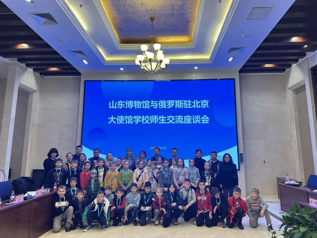研学期间,俄罗斯少年团到访了山东省博物馆,参观了馆内“海岱日新——山东历史文化陈列”“非洲野生动物大迁徙”“山东龙——穿越白垩纪”等展览,与山东博物馆馆长刘延常及相关人员开展了座谈交流。少年团的同学纷纷表示,他们要努力学习汉语,希望长大后能够考入孔子之乡的高等学府山东大学,学习更多的中国文化与先进科技,做好中俄之间文化传承与科技交流的使者。