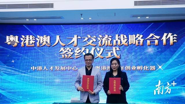 现场,粤港澳青年创业孵化器与中港人才发展中心签署战略合作协议,进一步推动穗港青年人才交流合作,为湾区人才建设注入新动力,推进粤港澳大湾区人才高地建设。