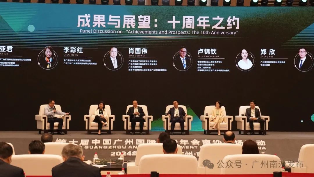 在“成果与展望:十周年之约”座谈会上,香港全港各区工商联首席会长卢锦钦、广东晶科电子股份有限公司董事长兼总裁肖国伟、广东医谷执行总裁谢嘉生、广州茶里集团有限公司首席行政官郑欣、澳门国际科技产业发展协会会长、广州九加二创意园投资有限公司总经理李彩红分享了自己与南沙的故事。