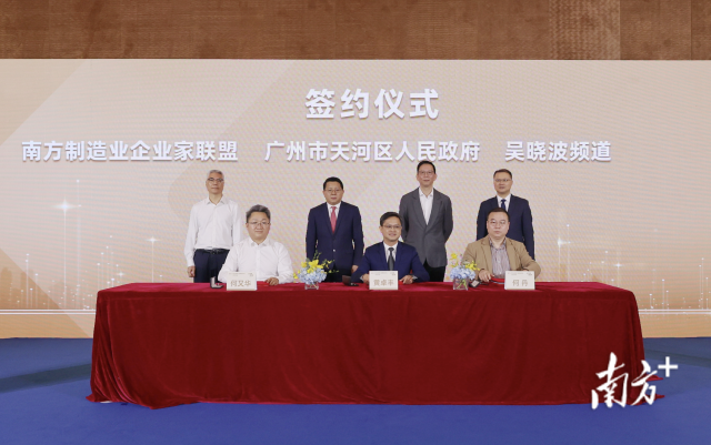在现场,天河区政府与南方制造业企业家联盟、吴晓波频道签约,标志着由南方日报、吴晓波频道、激荡书院联合发起的“南方制造业企业家联盟”正式落地天河。