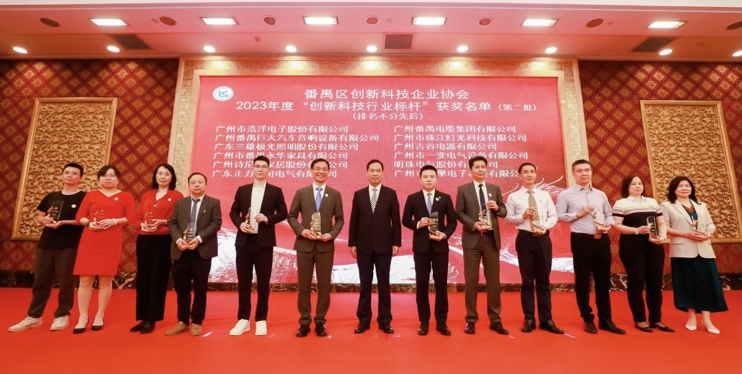 活动中,番禺区委主要负责人为浩洋电子股份有限公司、番禺电缆集团、锐丰音响科技股份有限公司、广日电梯工业有限公司等23家荣获区创科协2023年度“创新科技行业标杆”称号的企业颁奖。相关区领导先后为获得区创科协2023年度“科技创新之星”“卓越贡献奖”“优秀科技创新服务平台”荣誉的企业、单位代表颁奖。