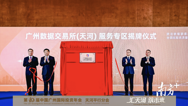 4月9日下午,第十届中国广州国际投资年会天河平行分会在广州四季酒店举办。会议以“汇天河 筑未来”为主题,广邀各界精英围绕天河区高质量发展和投资机遇展开对话、探讨合作、共商发展。广州数据交易所(天河)服务专区在此次投资年会上揭牌,全市首家数据交易服务专区正式落地天河。