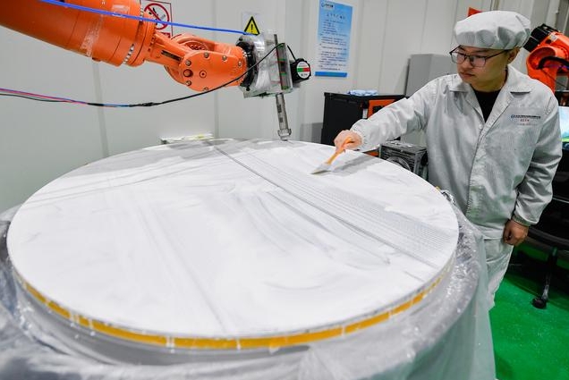图为科研人员利用智能机器人研抛平台加工光学反射镜。新华社记者 许畅摄
