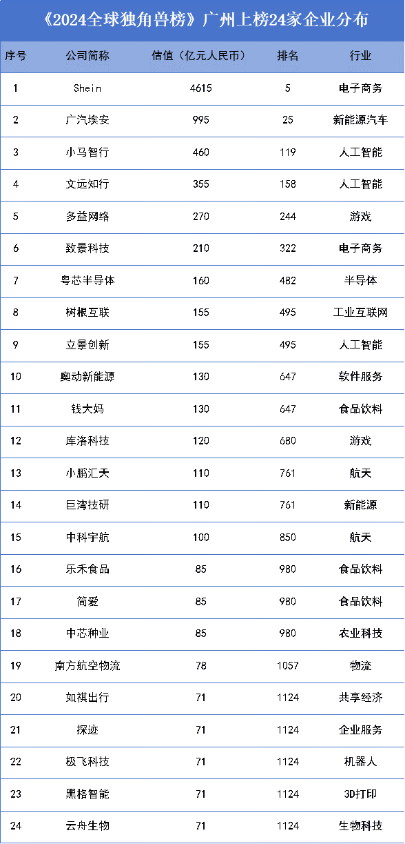 再创新高,全球第九!广州24家企业上榜全球独角兽