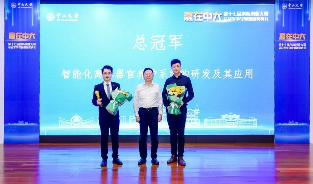 中山大学第十七届“赢在中大”创新创业大赛总冠军争夺赛暨颁奖典礼近日在中大广州校区南校园落幕。来自中山大学附属第一医院的参赛团队斩获总冠军。