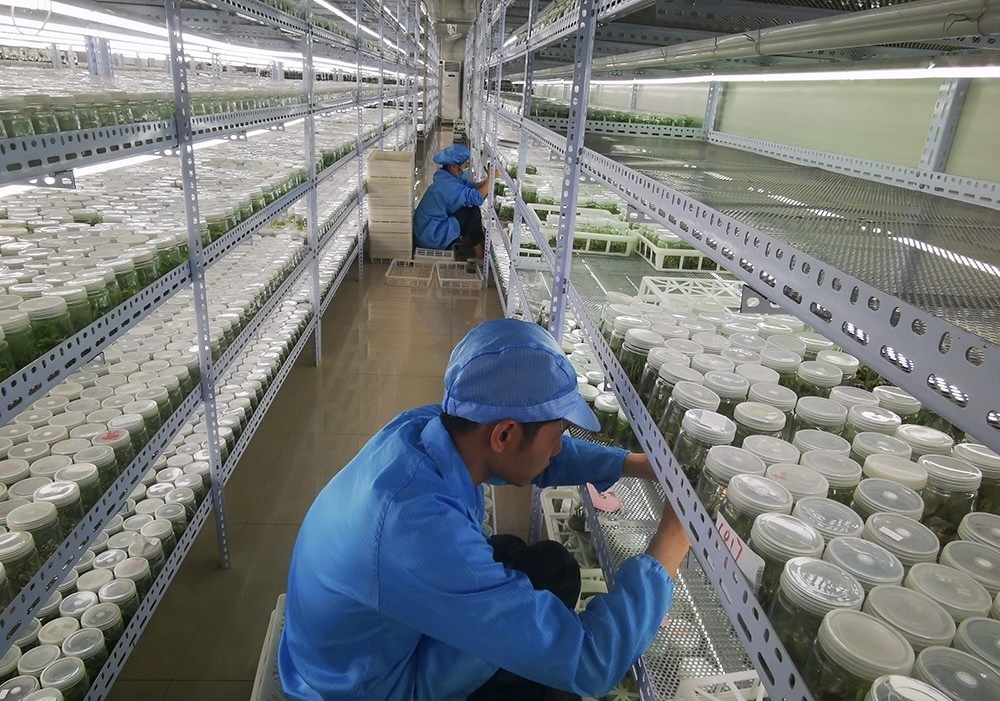 走进广州市卉通农业科技有限公司番禺基地的母本大棚,就像进入一个植物王国,里面储存了1500多种新优花卉植物,该公司从国外引进新品种进行组培、代工、扩繁和市场推广,组培苗年产能达8000万株、品种超过5000个,产品销往全国各地和亚太及欧美国家。