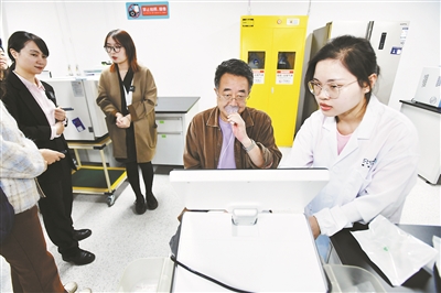 在精智未来智能呼气代谢分子精准分析实验室,工作人员正在做实验。