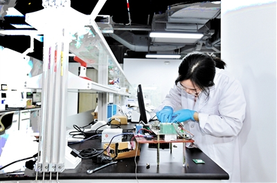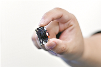 广州颠覆性技术创新中心工作人员展示实时超光谱成像芯片。