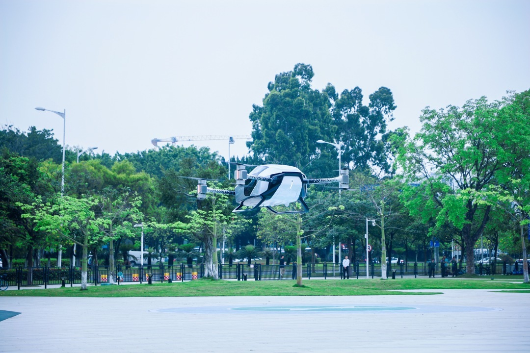 蓝天白云下,小鹏汇天飞行汽车旅航者X2在广州大学城青创汇广场垂直起飞,全程采用自动驾驶模式,在广州大学城低空经济应用示范岛完成了首次低空飞行演示,拉近了人们与天空的距离,也拉开了广州大学城未来城市空中交通新的帷幕。