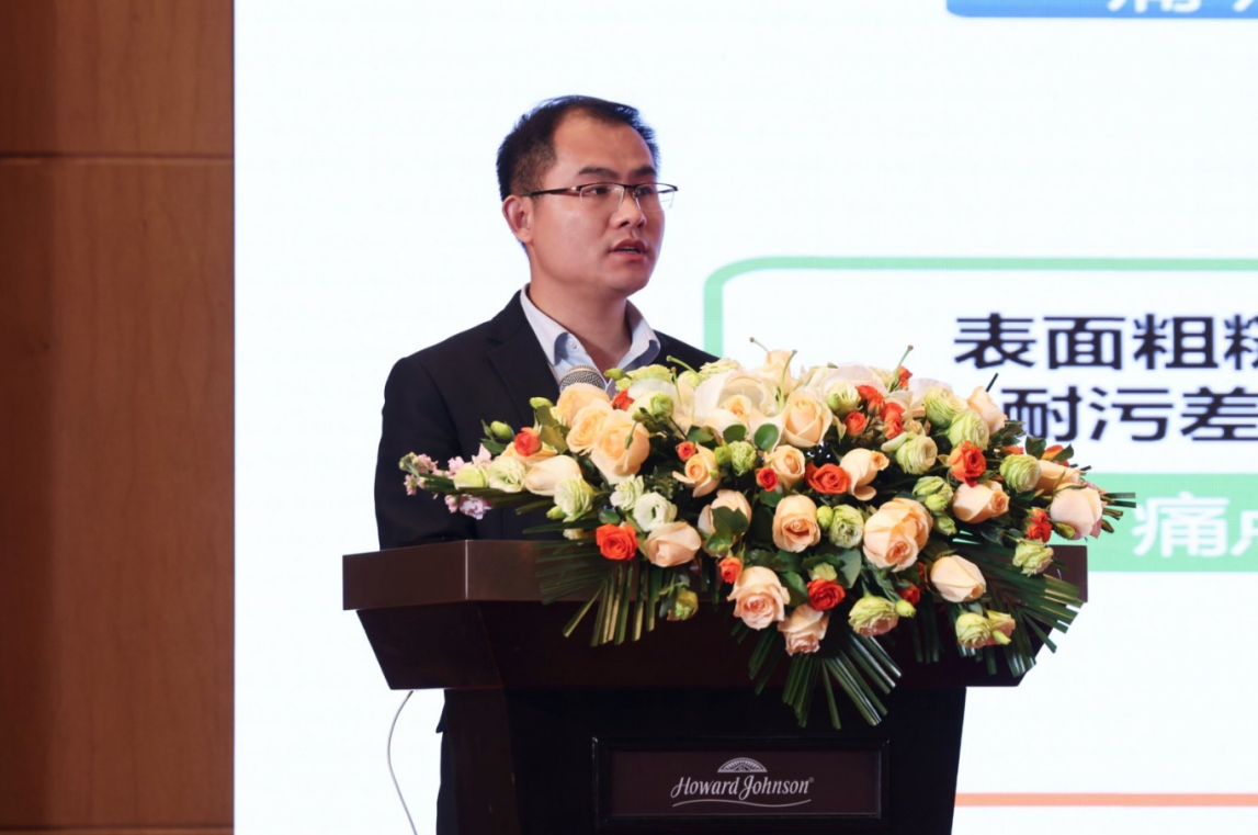 浙江佑谦特种材料有限公司市场总监徐廉久带来了《塑胶基材可持续水性涂装进展》,他表示,随着国家“碳达峰、碳中和”目标的提出,水性涂装成为行业发展趋势,下游行业纷纷采纳水性涂装,传统溶剂型涂装企业面临转型挑战。塑胶用水性光固化涂料符合国家环保政策,已在多个行业如汽车、电子等得到应用,主要塑胶基材类型包括ABS、PC等。浙江佑谦创新研发的塑胶用水性光固化涂料技术成熟度高、创新性能优异,能够为难附着基材提供一体化解决方案,领先水性涂装整体工程能力助力宁波制造业实现“源头替代”。