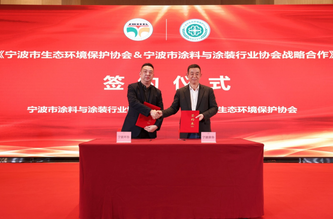 为积极践行绿色可持续发展理念,探索区域生态环境保护与经济社会协调发展新模式,为宁波制造业实现“源头替代”建立和完善高水平、多层次的技术创新、专家智囊和资源支撑体系,充分发挥双方优势,实现友好合作、互利双赢。宁波涂协与宁波市生态环境保护协会秘书长在大会上共同签署了《宁波市生态环境保护协会&宁波市涂料与涂装行业协会战略合作》协议。双方将共同探索绿色发展的新模式、新路径,促进涂料涂装产业的绿色转型和可持续发展。