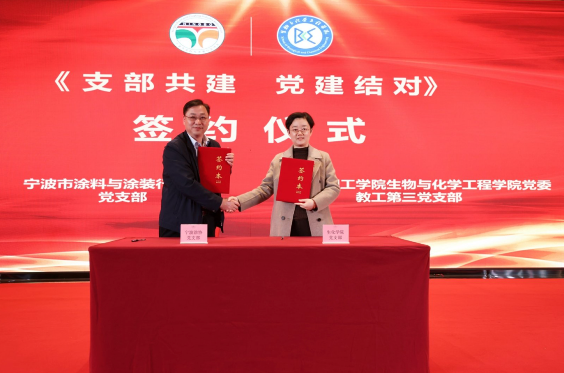 党建结对和支部共建是加强党组织建设、促进党员交流的重要方式。宁波涂协党支部与浙大宁波理工学院生物与化学工程学院党委教工第三党支部共同签署了《支部共建 党建结对》协议。双方党组织将在党建工作中深化合作,共同推进党的建设和事业发展,将进一步提升涂料行业协会党支部的组织力和凝聚力。