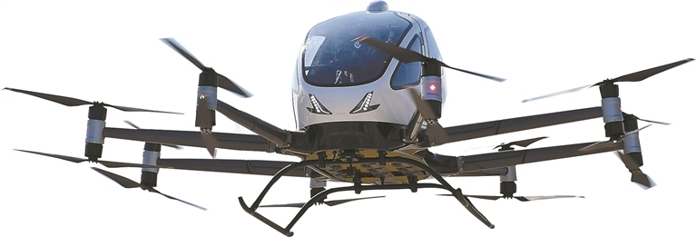亿航EH216-S无人驾驶航空器全球商业载人首飞演示。