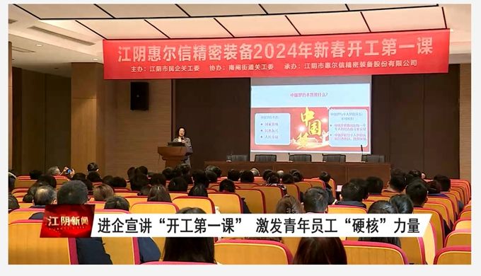 江阴学院马克思主义学院院长、江阴市关工委青工教育讲师团成员周秀娥走进江阴市惠尔信精密装备股份有限公司宣讲 “开工第一课”,为公司一百多名青年员工作了“建工高质量 青春展风采——两个大局背景下,青工动力与能力提升”专题讲座。活动由惠尔信办公室主任顾华主持。