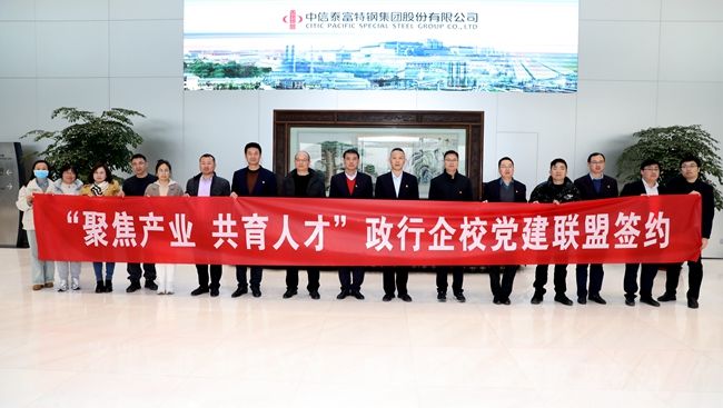 根据江阴市委《关于开展“暨阳红—盟红江阴”基层党建三年行动的实施意见》精神,结合《江阴职业技术学院“暨阳红—盟红江阴”基层党建三年行动方案》要求,12月25日下午,由江阴职业技术学院行政第三支部牵头,江阴市人力资源管理服务中心支部、江阴市人才发展集团有限公司唯才支部和江阴兴澄特钢管理支部共同组织的“聚焦产业 共育人才”政行企校党建联盟在江阴兴澄特钢成功签约,党建联盟四方党支部支委成员共同参与了党建联盟签约活动。