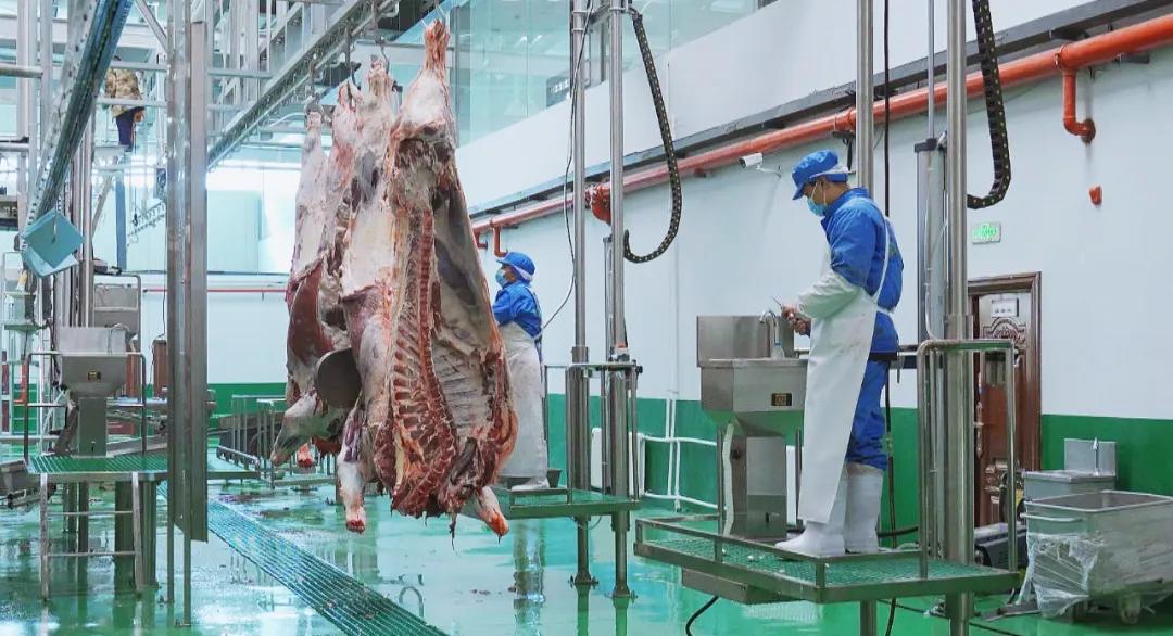 双成实业作为兴隆镇唯一一家肉牛养殖集群暨牛羊精深加工全产业链工厂,自去年投产以来持续带动周边屠宰散户出村入厂,实现当地牛羊“集中检疫、定点屠宰”。走进双成实业屠宰加工车间,标准化的作业流水线、先进的设备、干净整洁的环境……工作人员分工明确,屠宰、分割、加工、包装、入库,一道道工序有条不紊地进行着。