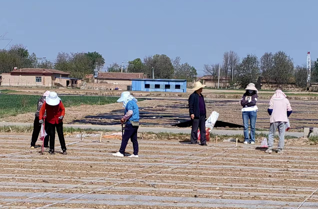 图为我站三名技术员在屯字曹路指导、播种,展示品种玉米场景。