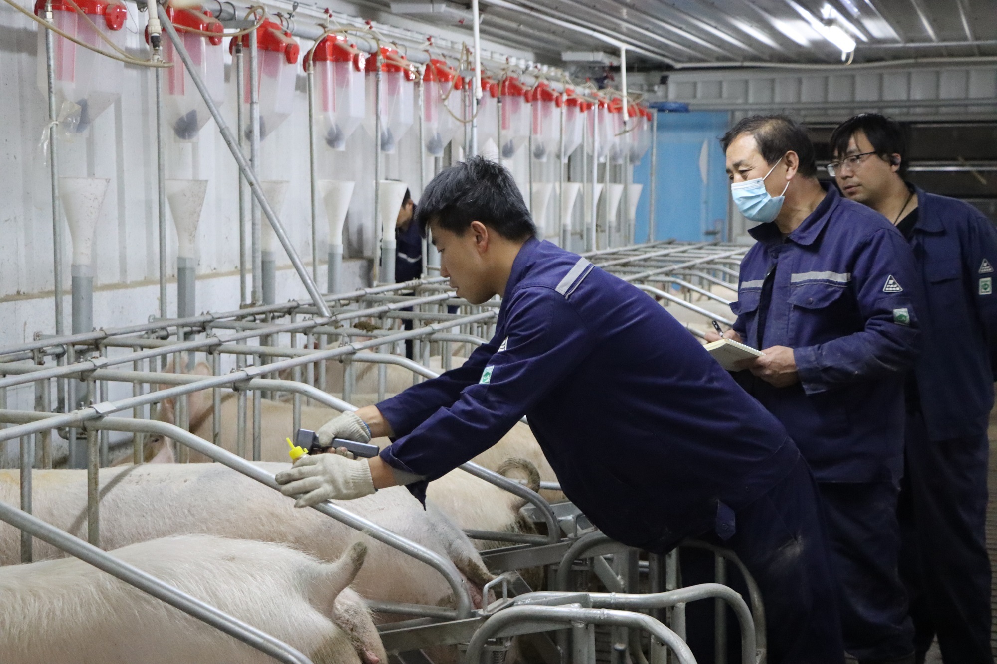 “母猪待产时会进入独立的产床,产床能达到保温箱的效果,可以满足小猪的生长需要……断奶后会按照公猪母猪和后备母猪进行分类,再进入保育舍继续培育。”任晓斌说。