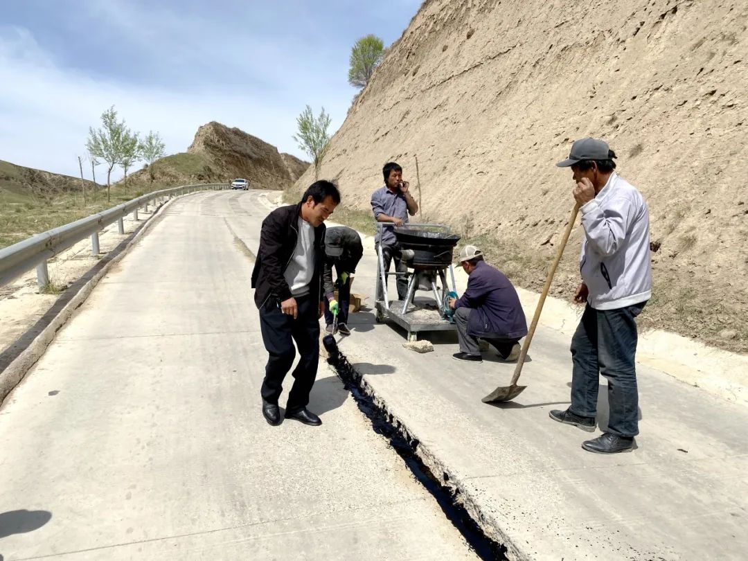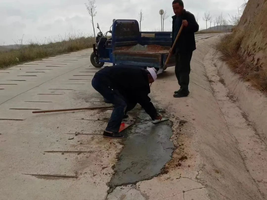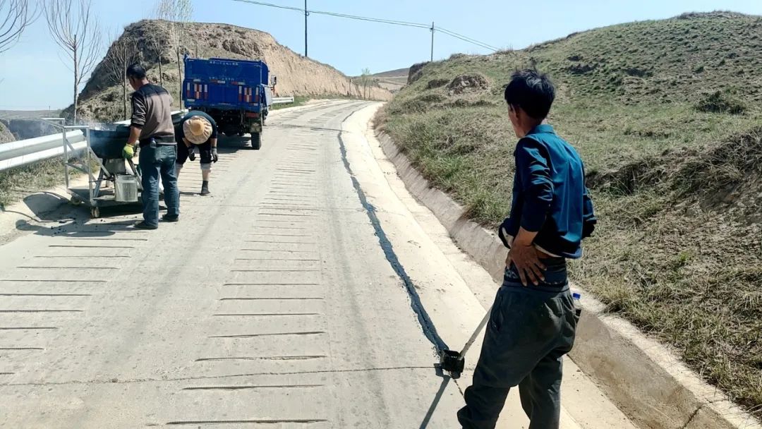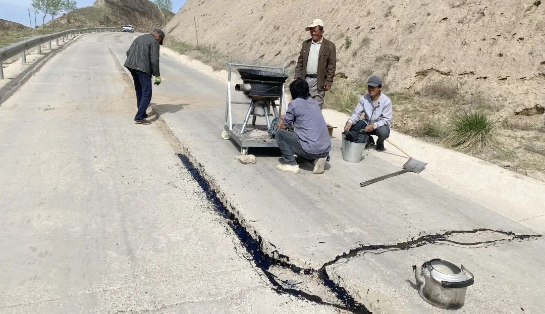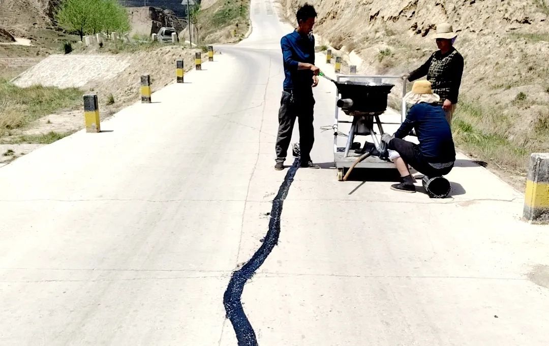 补缝填洞,消除隐患。裂缝是路面常见病害,如果不及时进行处理,雨水流入后将导致路面边沟破坏加速,形成大的安全隐患。乡路长办通过采购灌缝剂、定制热熔工具、开展人员培训等举措对冬冻春融期坑槽、裂缝进行浇灌工作,有效防止雨水渗入导致大的隐患发生。同时督促各村路长办对辖区内道路、边沟较大的裂缝、坑槽及时进行排查修复,及时消除隐患。