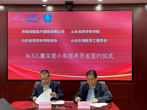 4月16日下午,由山东生物医学工程学会牵头联系,“ALS儿童关爱小车”技术开发签约仪式在山东省药学科学院举行。签约仪式上,济南闰凯医疗器械有限公司董事长杨卫东与山东省药学科学院党委副书记段崇刚签订了技术开发协议。山东生物医学工程学会副秘书长尹弢及相关研发人员出席会议。