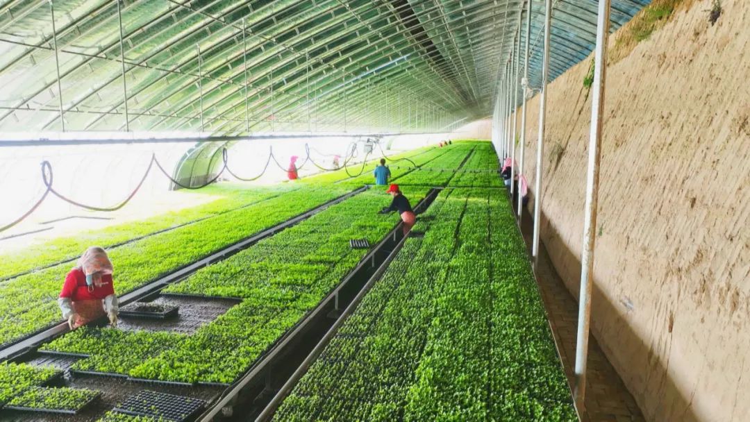 春风催新绿,育苗正当时。走进下堡村育苗基地,工人们正在有条不紊地装盘、点种、摆盘。在基地务工的下堡村村民马悦正在忙着移苗和摆盘,她告诉记者,“温室大棚基地就在村子附近,从基地开始建设她就在这里打工,挣钱贴补家用。”