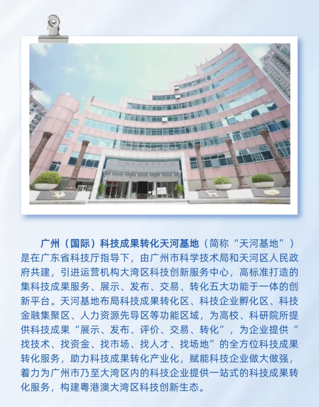 经过近40年的发展,为赓续环五山“星期六工程师”创新精神,天河区为持续开展系列技术经理人培养工作,打造技术交易高地,于2023年在天河基地揭牌设立了“大湾区技术经理人之家”。大湾区技术经理人之家以开放协同为原则,致力于将成千上万名技术经理人集聚起来,形成科技成果转化的一股合力,目前已吸纳来自广州、北京、上海、杭州、南京、苏州、温州、成都、哈尔滨等地区的超200名技术转移专业人才,搭建全国技术转移转化协作网络,完善产业创新服务体系,建立产业创新生态常态化工作机制,推动高校科研院所创新成果向现实生产力转化。