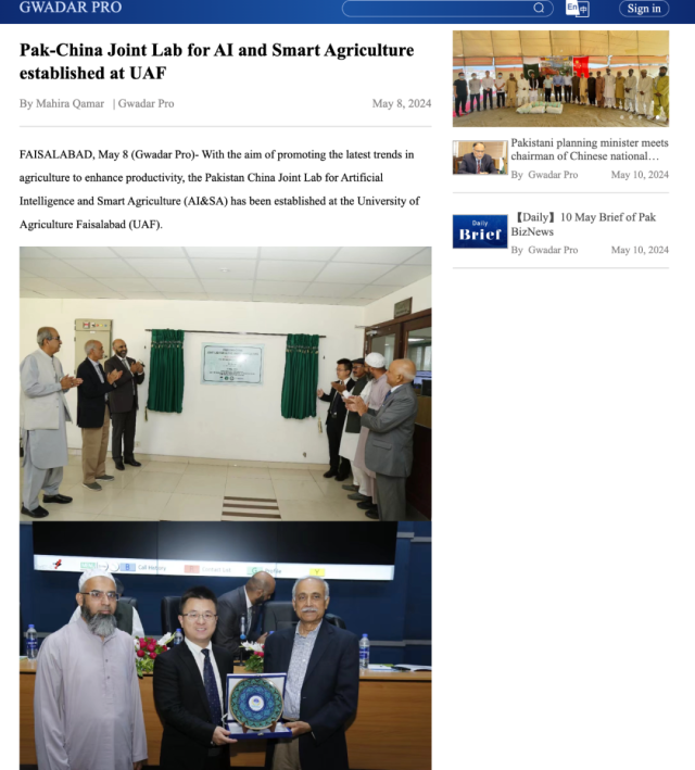 他表示,联合实验室开启了巴基斯坦人工智能驱动农业发展的新进程。实验室在进行先进研究的同时,也将采取措施向当地农民推广先进实用技术,促进农业科技成果的转化应用,助力当地农业改革和提升。