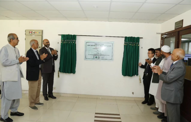 “人工智能农业联合实验室”由UAF副总裁Iqrar Ahmad Khan博士和中科凯泽总裁吴军博士共同揭牌。巴基斯坦国家航空航天科技园项目总监Tauseef-ur-Rehman、巴基斯坦气象局局长Sahibzada Khan、理学院院长Ijaz Ahmad Bhatti博士、高级研究中心主任Sultan Habibulah博士、实验室负责人Saqib Ali博士等嘉宾出席了开幕式。
