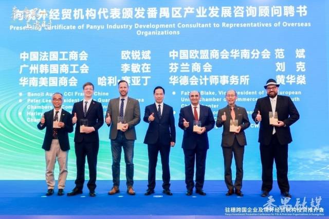 下午,“来番禺,正当时——驻穗跨国企业及境外经贸机构投资推介会”上,番禺区委书记黄彪向一批境外经贸机构颁发了番禺区产业发展咨询顾问聘书,并发出“来番禺,正当时”英雄帖,邀请与会嘉宾多来番禺考察投资、旅游观光,多向世界讲起外商外资在番禺的成功故事,叙述番禺经济社会高质量发展的励志故事,讲述粤港澳大湾区“加速度”融合的全新故事。并表示番禺将继续打好外贸、外资、外包、外经、外智“五外联动”组合拳,一如既往为外资、外企、外国朋友做优服务,打造更多趋同港澳的国际化社区,让企业家、投资人、创业者,在番禺这个舞台展示他们的精彩人生故事,精妙创业历程和精益投资案例,携手推动粤港澳大湾区融入世界。