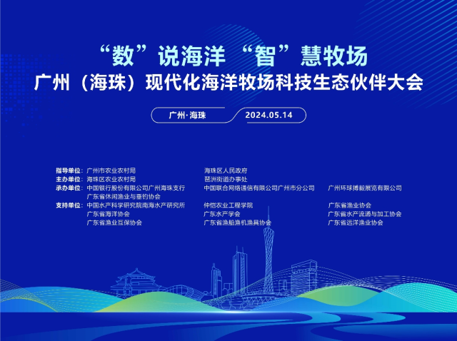 海珠区立足辖内科创要素集聚优势,借助数字经济赋能海洋科技发展,发展海洋牧场经济,将于5月14日举办“数”说海洋 “智”慧牧场—广州(海珠)现代化海洋牧场科技生态伙伴大会。本次大会由广州市农业农村局、海珠区人民政府指导,海珠区农业农村局、琶洲街道办事处主办,中国银行股份有限公司广州海珠支行、中国联合网络通信有限公司广州市分公司、广州环球搏毅展览有限公司、广东省休闲渔业与垂钓协会承办。