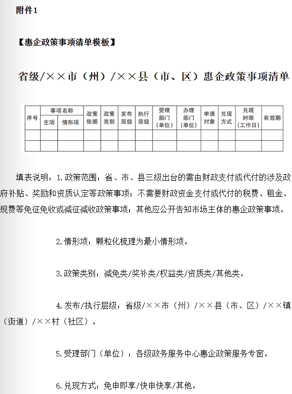 附件:1.惠企政策事项清单模板