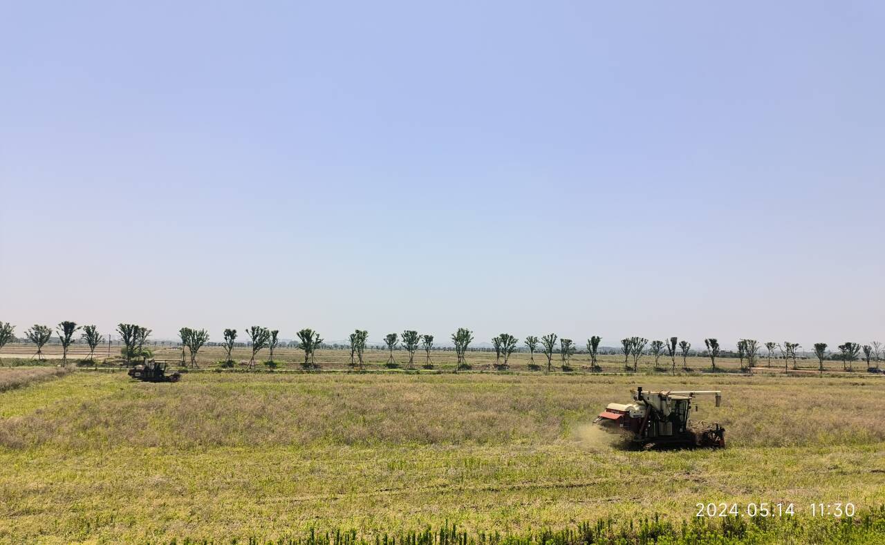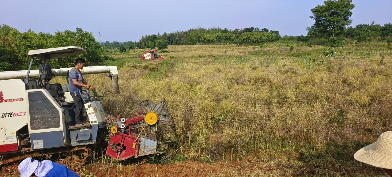 向阳湖镇种植油菜大户收割主要依托永宏农业代为机割,其中恒硕农业付强130亩油菜投入两台机械,一天完成收割。全镇共计投入20台机械,收割面积1100亩,收割完的田地进行轮种高粱1600亩。