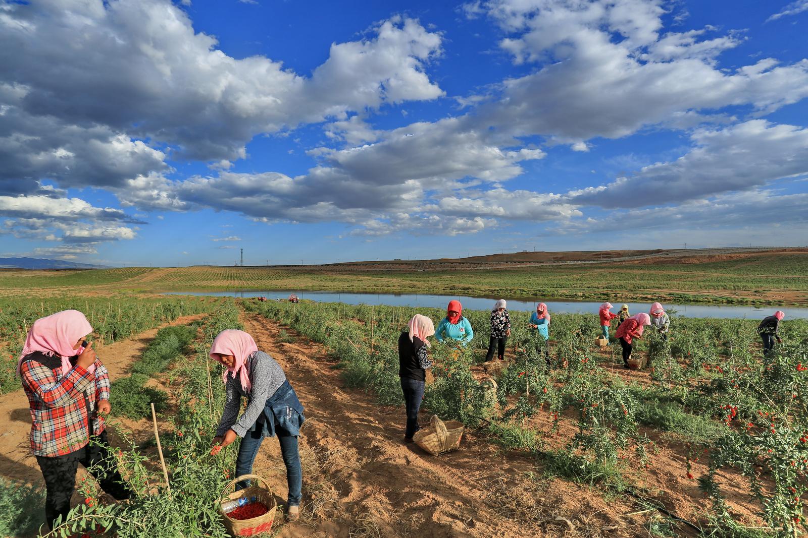 “经过10年不断投资打造,我们目前已建成万亩枸杞种植基地,让昔日的荒滩变成绿洲。现在庄园每年稳定就业的周边群众有四五百人,季节性务工人员2000多人。”宁夏玺赞枸杞生态庄园总经理高贵武介绍,通过走优势特色产业与旅游文化融合之路,打造休闲农业、健康养生旅游、绿色高效循环的智慧农业示范区。