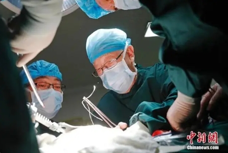 吴孟超院士为患者进行手术。中新社记者 殷立勤 摄