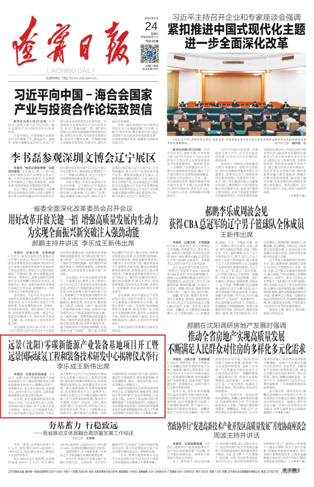 辽宁日报记者 史冬柏 5月23日,远景(沈阳)零碳新能源产业装备基地项目开工暨远景国际绿氢工程和装备技术研发中心揭牌仪式举行。省委副书记、省长李乐成出席,省委副书记、沈阳市委书记王新伟,远景科技集团董事长张雷出席并致辞。仪式前,李乐成现场听取项目规划设计介绍,与企业负责人深入交流,详细询问技术创新、全产业链开发等方面情况。他表示,辽宁是能源大省,具有清洁能源丰富应用场景,当前正深入贯彻习近平总书记在新时代推动东北全面振兴座谈会上重要讲话精神,围绕更好统筹发展和安全,有效保障国家能源安全,加快建设风光火核储一体化能源基地,打造清洁能源强省,在发展新质生产力上奋勇争先。希望企业抓住辽宁实施全面振兴新突破三年行动带来的新机遇,推动项目早建成、早投产、早达效。同时,更好发挥“链主”企业作用,持续加大在辽投资布局力度,带动上下游配套企业投资辽宁,携手做强产业集群。沈阳市要持续加大招商引资力度,把项目建设作为重要抓手,强化要素保障,优化协调服务,建设一流营商环境,为企业发展壮大厚植沃土。远景科技集团是全球领先的绿色科技企业,在智能风电、储能系统、绿氢技术等方面“链主”企业优势明显,产业竞争力强。此次开工的远景(沈阳)零碳新能源产业装备基地项目,将建设大兆瓦智能风电机组以及面向新型能源系统的全新智慧储能系统,致力于打造全球零碳产业标杆项目。此次揭牌的远景国际绿氢工程和装备技术研发中心,将集聚全球工程和装备技术研发人才,致力于打造成为世界领先的绿氢工程技术企业,向全球客户提供风光氢储综合解决方案。以这两个项目为牵动,远景科技集团将加快推进绿氢装备制造基地、动态绿能氢氨工厂、国际氢能源装备产业基地等项目建设,助力辽宁壮大新能源产业集群,为辽宁绿色低碳高质量发展注入新动能。省直有关部门和沈阳市负责同志参加仪式。来源:《辽宁日报》2024年5月24日头版转02版