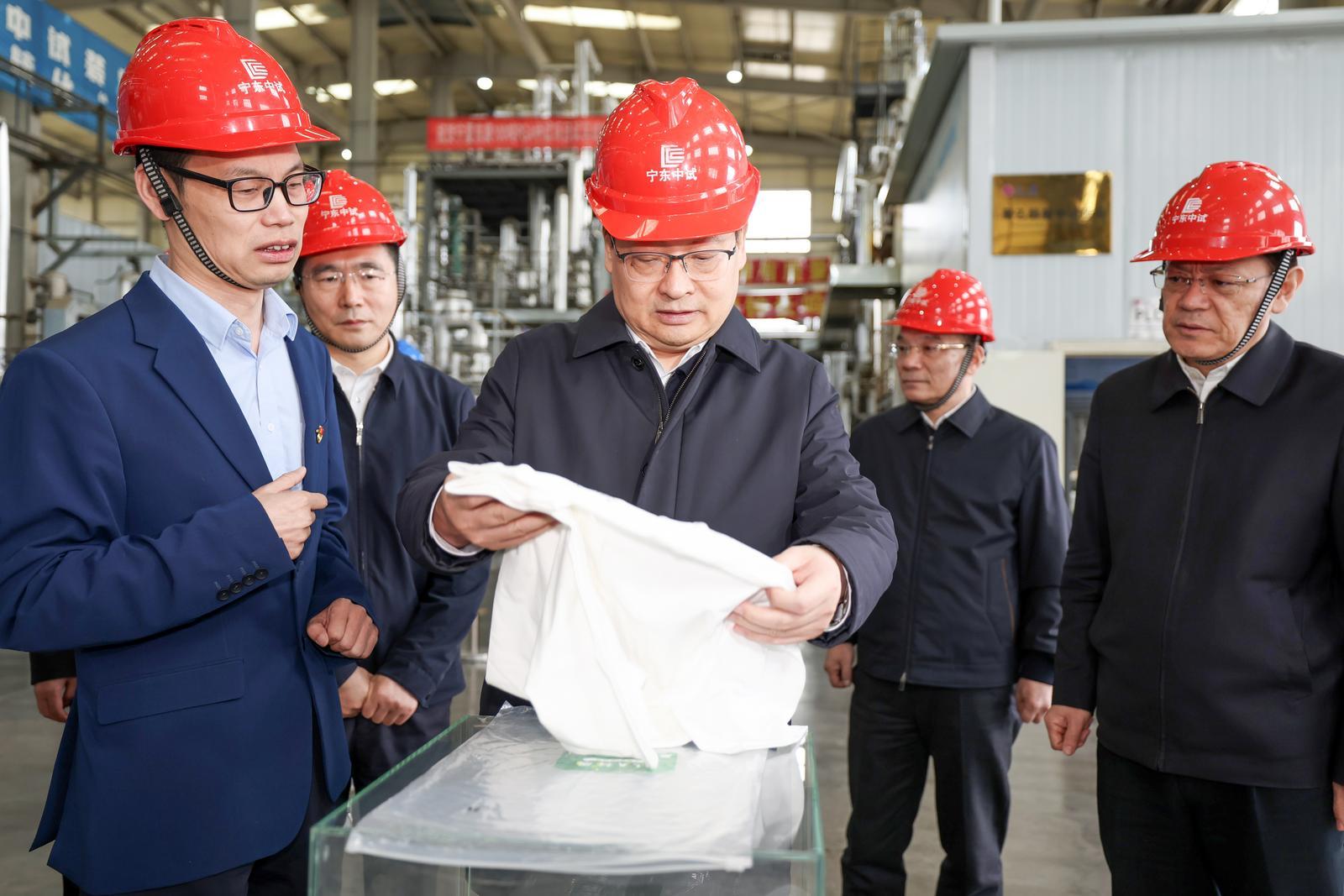 3月24日,梁言顺在宁东现代煤化工中试基地,了解企业产品开发和测试有关情况。