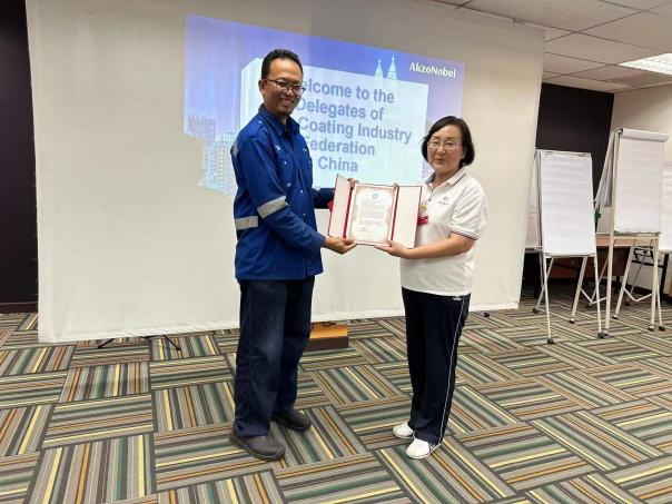 Ramzul Zafran Mohamad厂长介绍了阿克苏·诺贝尔(马来西亚)公司的发展历程和公司布局,并重点介绍了公司在绿色环保方面的做法。“0土埋、废料全利用、废漆制作水泥砖、厨余垃圾堆肥”等一系列绿色可持续发展的措施和做法得到了在座企业的点赞,值得学习!