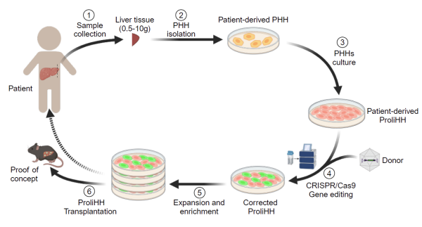 基因编辑纠正病人来源可增殖人肝细胞实现遗传代谢性肝脏疾病治疗