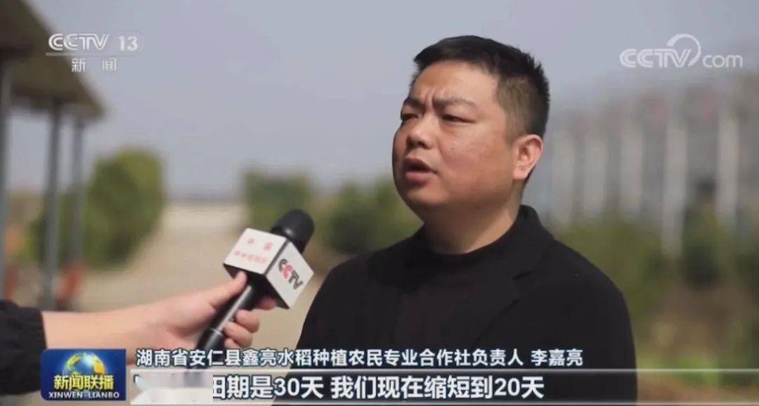 湖南省安仁县鑫亮水稻种植农民专业合作社负责人 李嘉亮:以前秧田期是30天,我们现在缩短到20天,可以为周边的农户提供2.5万亩到3万亩的秧苗。