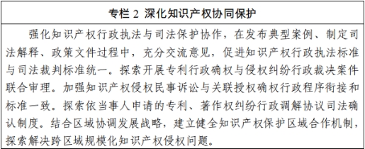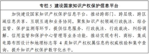 20. 强化知识产权保护信息支撑。持续优化中国保护知识产权网和中国知识产权维权援助网。积极开展知识产权纠纷在线诉讼审理。