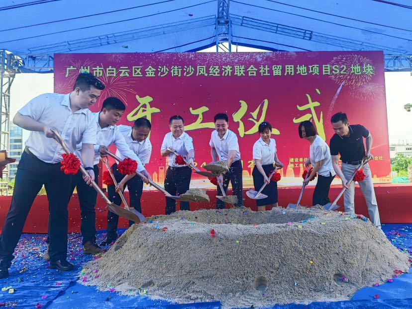 5月24日,广州白云区金沙街沙凤经济联合社留用地S2地块白云创智科技园项目举行开工仪式。现场,来自金沙街和沙凤联社的嘉宾挥铲培土为项目奠基,标志着该留用地项目正式开工,进入实质性开发建设阶段。