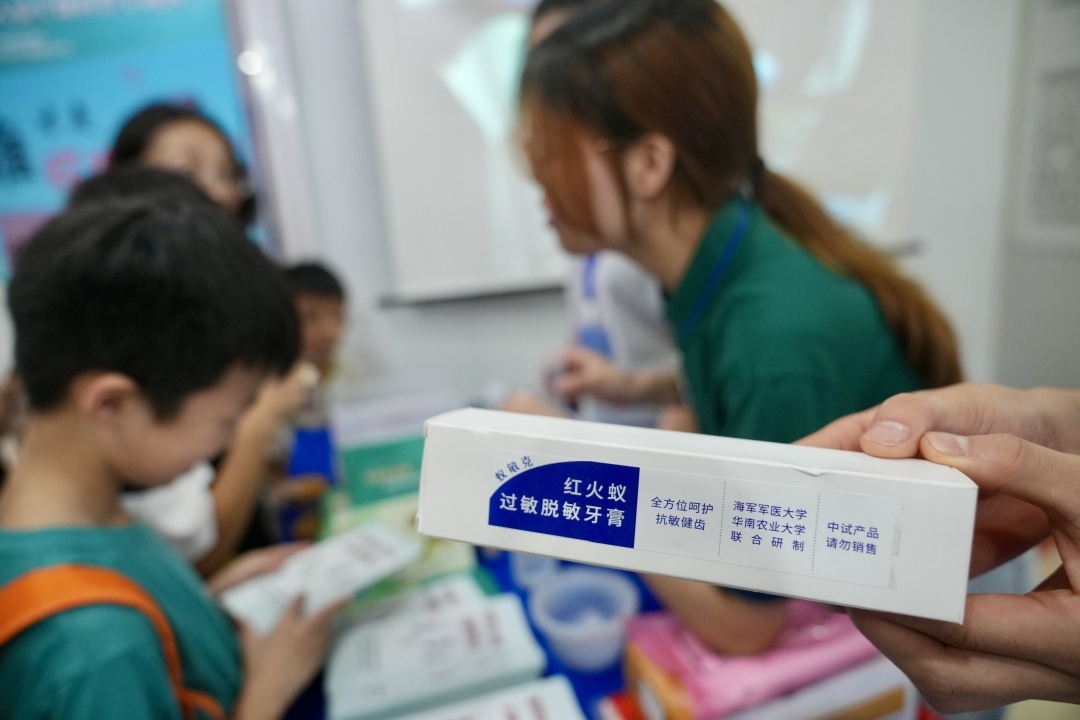 春夏之交又进入了红火蚁的活跃期。尽管体型微小,但红火蚁却是世界公认的最具破坏力的百种入侵有害生物之一,被称为“疯狂的生态杀手”。目前,全国每年被红火蚁叮咬人数已超过百万,一些人因为过敏,一旦被咬甚至还有生命危险,常常让人谈“蚁”色变。在华南农业大学植物保护学院的展位上,科研人员向记者展示了他们开发的红火蚁防控饵剂、红火蚁过敏脱敏牙膏、火红蚁植物防叮液等产品。