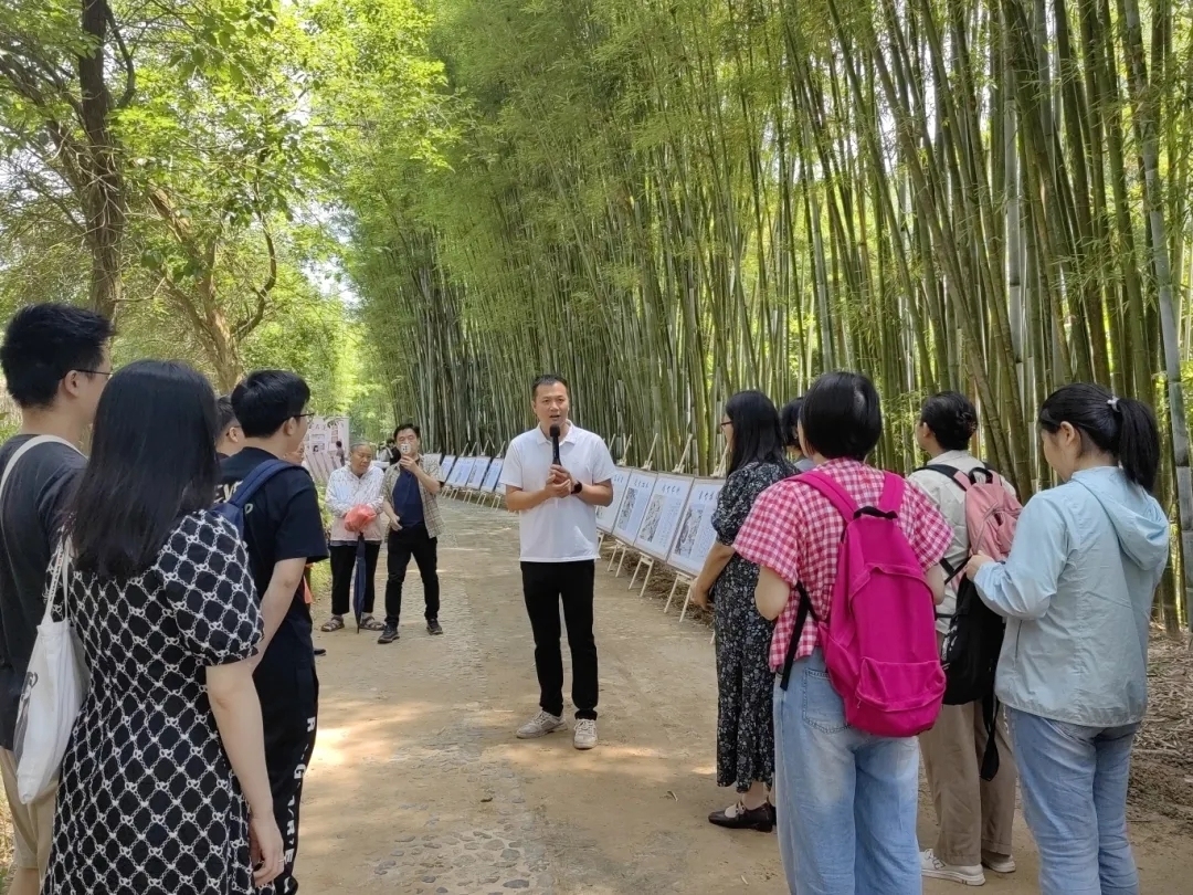 竹影摇曳,河水汩汩。古官道两侧整齐地摆放着流溪古法造纸技艺的展板,穿过展示区便是“莲麻流溪古纸研学堂”的“户外实践基地”。由吕田镇莲麻村党(总)支部书记组织第一批“学生”来到古官道,在翠竹碧水旁开启莲麻流溪古纸研学之旅。