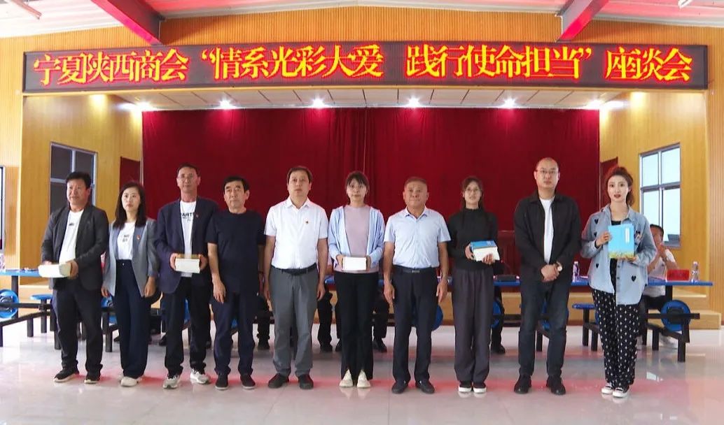 在西滩乡中心小学座谈会上,宁夏陕西商会向学生捐赠了图书和慰问金,结对帮扶企业为学生捐赠了帮扶资金,爱心企业家为特困学生发放了奖学金,马生林向宁夏陕西商会回赠了书法作品,并为各爱心企业家颁发了荣誉牌和证书。