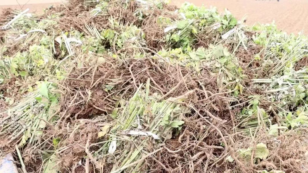 艾草是一种应用广泛的中药材,有着极高的药用和经济价值。“这就是艾草种苗,把这个切成一节一节的,再撒到挖好的垄里,来年就能生根发芽!”蒋河村党支部书记申学礼介绍。